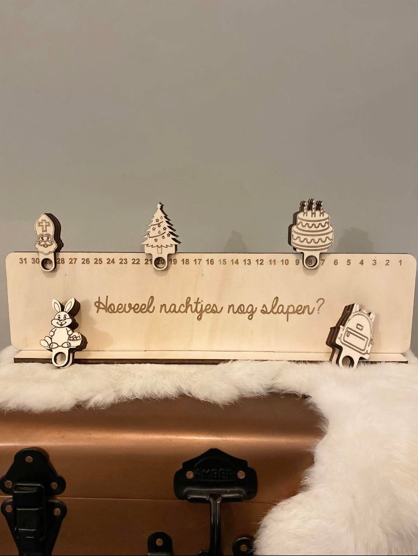 Met deze houten aftelkalender wordt wachten op de leukste dagen van het jaar extra spannend. Of het nu gaat om een verjaardag, Sinterklaas , Kerstmis of een ander feestje... met de vrolijke schuifjes tel je elke dag af.