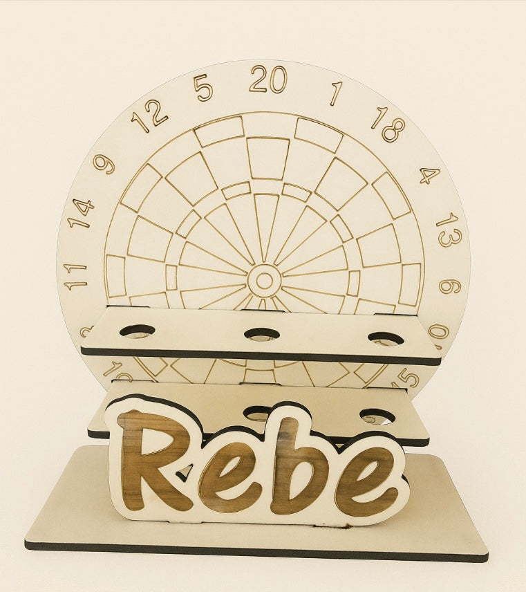 Stevige houten darthouder om darts veilig en stijlvol in op te bergen. Wordt gepersonaliseerd met naam en optioneel een kort tekstje, waardoor het een uniek en persoonlijk item is voor elke dartliefhebber. Praktisch, decoratief en ideaal als cadeau.