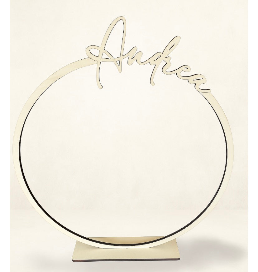 Maak je interieur of een speciale gelegenheid extra persoonlijk met een op maat gemaakte naamcirkel met voet! Perfect als decoratie voor de babykamer, voordeur, bruiloft, verjaardag of als een uniek cadeau. Kies je eigen naam, lettertype en stijl voor een prachtige, tijdloze uitstraling.