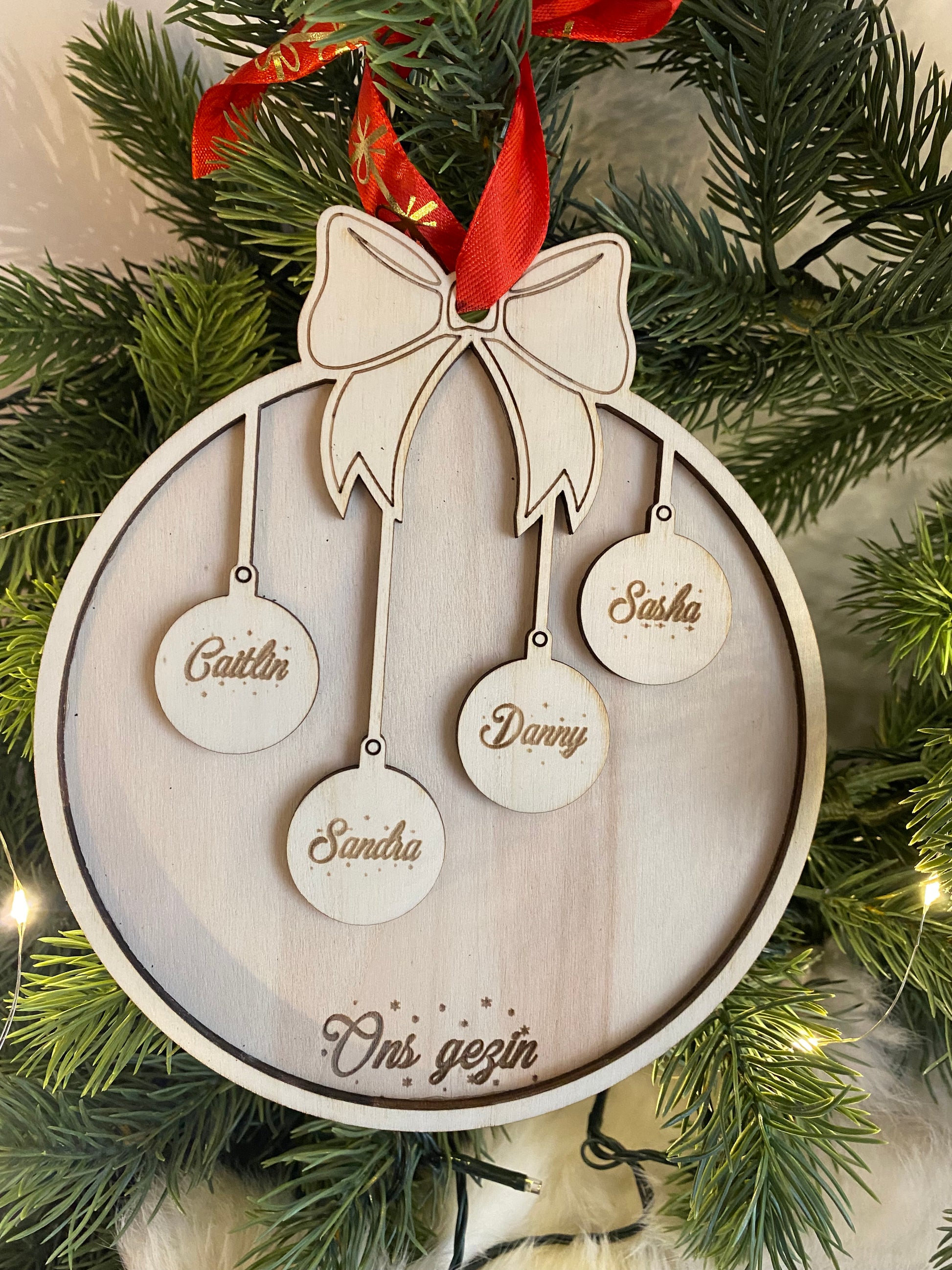Op zoek naar een uniek Ă©n hartverwarmend kerstcadeau? Deze prachtige houten kerstbal is volledig personaliseerbaar met de namen van jouw gezin. Perfect om je boom extra speciaal te maken of om cadeau te doen!Â