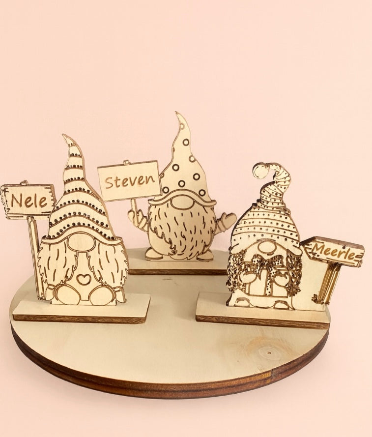 Een sfeervolle houten gnome, gepersonaliseerd met naam. Prachtig als decoratie op de kersttafel of als unieke blikvanger tussen je decoratie. Een warm en persoonlijk detail dat zorgt voor extra sfeer.