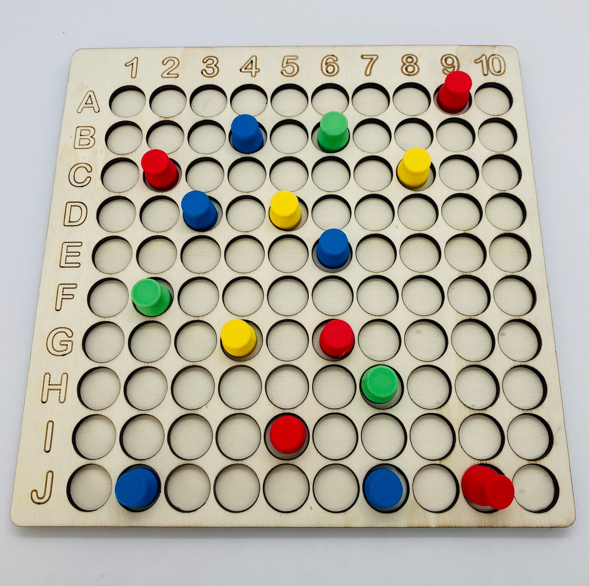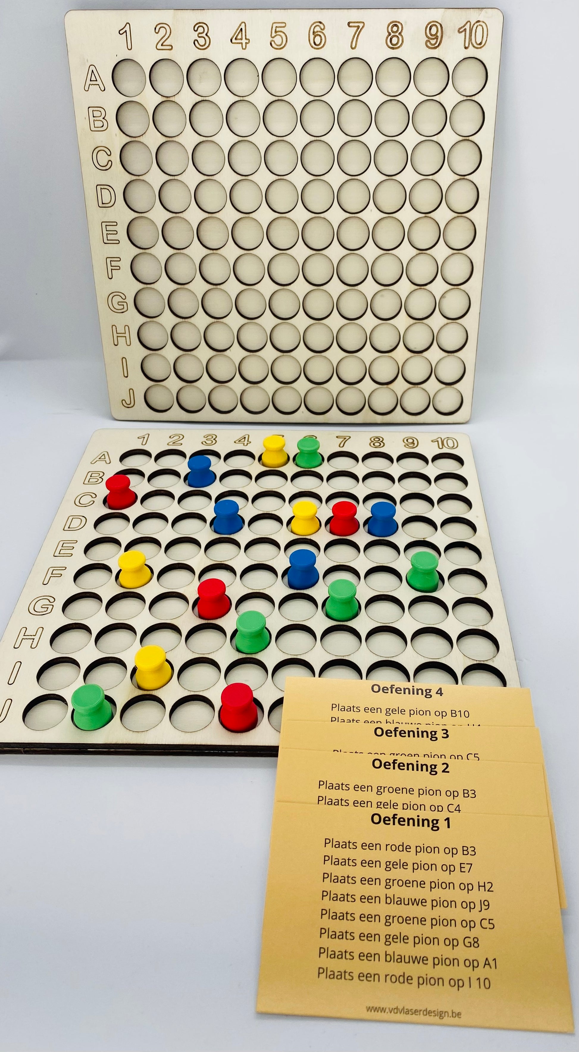 - 2 doosjes met 4x 10 pionnen ( kleuren: rood, geel, groen, blauw )